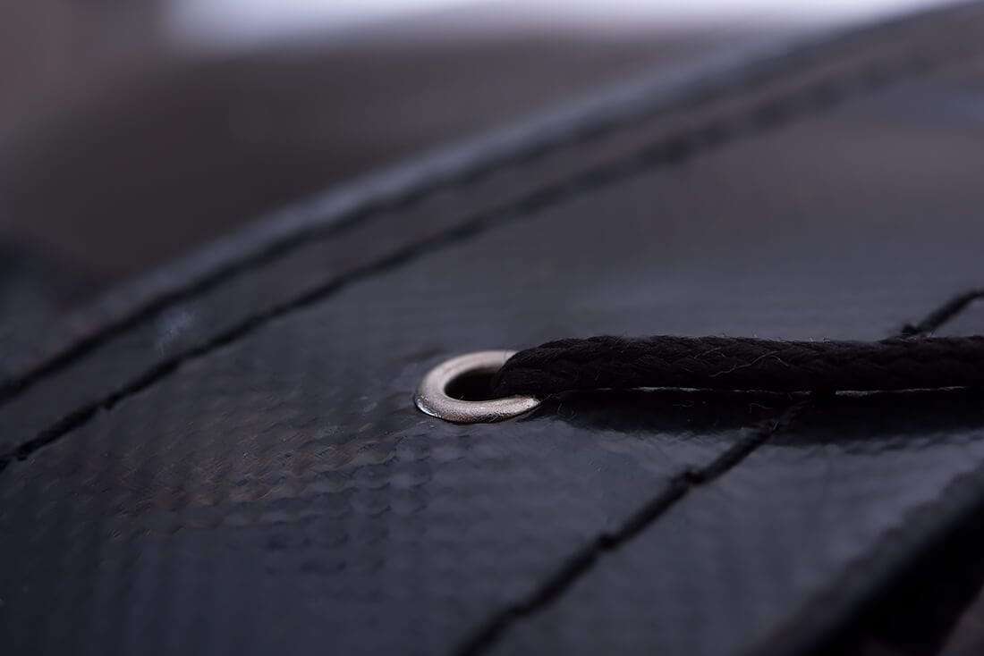• Metalowe nity - zabezpieczają materiał przed rozcinaniem oraz posiadają gładkie krawędzie, by chronić przed przetarciem sznurków do wiązania worka