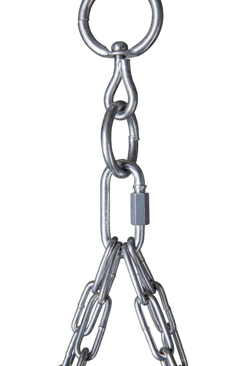 • Łańcuch - Worek wisi na 4 odcinkach mocnego, zgrzewanego, super wytrzymałego łańcucha. Łańcuchy nie skręcają się w trakcie treningu – górne mocowanie jest obrotowe.